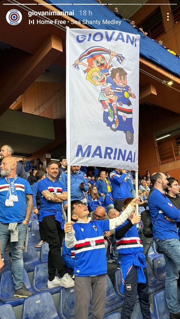Uno dei fattori principali che ha permesso ai blucerchiati una così grande rimonta è stato il sostegno dei tifosi, presenti in massa ad ogni appuntamento. A Genova per il match con la Reggiana sono accorsi più di 25 mila tifosi blucerchiati tra cui i Giovani Marinai come dimostra la foto condivisa dal loro profilo Instagram dal giovane tifoso che sventola il bandierone del suo gruppo: