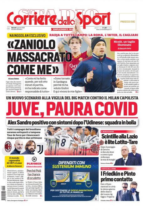 Le prime pagine dei Quotidiani Sportivi di oggi in edicola: il Secolo XIX, Tuttosport, Gazzetta dello Sport e Corriere dello Sport