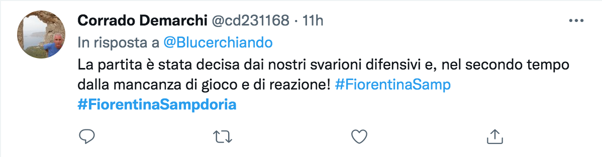 La Sampdoria cade sotto i colpi della Fiorentina. Bastano ventidue minuti alla squadra viola per pareggiare e portarsi in doppio vantaggio. Errori corali e individuali su quali Roberto D’Aversa non è voluto entrare nel merito. Non dello stesso avviso i tifosi blucerchiati che hanno messo nel mirino Nicola Murru.