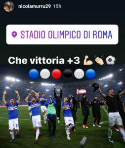 I festeggiamenti, anche sui social, non si sprecano per i giocatori della Sampdoria, tornati ieri da Roma con tre punti pesantissimi. Dal primo all’ultimo, tutti i blucerchiati in possesso di un account Instagram hanno celebrato la vittoria dell'”Olimpico”, chi con una foto sul proprio profilo e chi semplicemente postando una storia. Dal Portogallo, si è rifatto vivo anche Bruno Fernandes, che si è complimentato con Zapata per il gol segnato: tra compagni, invece, l’attaccante colombiano è stato preso in giro per da Viviano e Ferrari che, per via del colorito scuro della sua pelle, hanno tenuto a rimarcare come nella foto di gruppo scattata sul pullman fosse stato immortalato anche lui. «E’ tornata la pipa», ha scritto lo stesso Zapata, mentre Kownacki ha scherzato sul suo imperioso stacco areo su Florenzi: «I believe I can fly», ha scritto il polacco nella didascalia alla foto postata. Murru, Capezzi, Caprari, Quagliarella, Bereszynski, Torreira, ma anche l’infortunato Praet hanno voluto esternare la propria gioia sui social: ecco la fotogallery di tutte le reazioni dei giocatori.