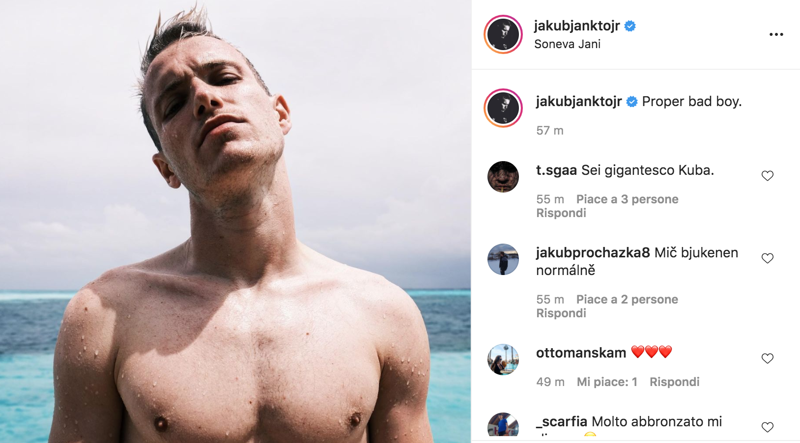 Sampdoria, Jakub Jankto si gode le vacanze alle Maldive postando una foto da modello: «Un vero ragazzaccio» – FOTO