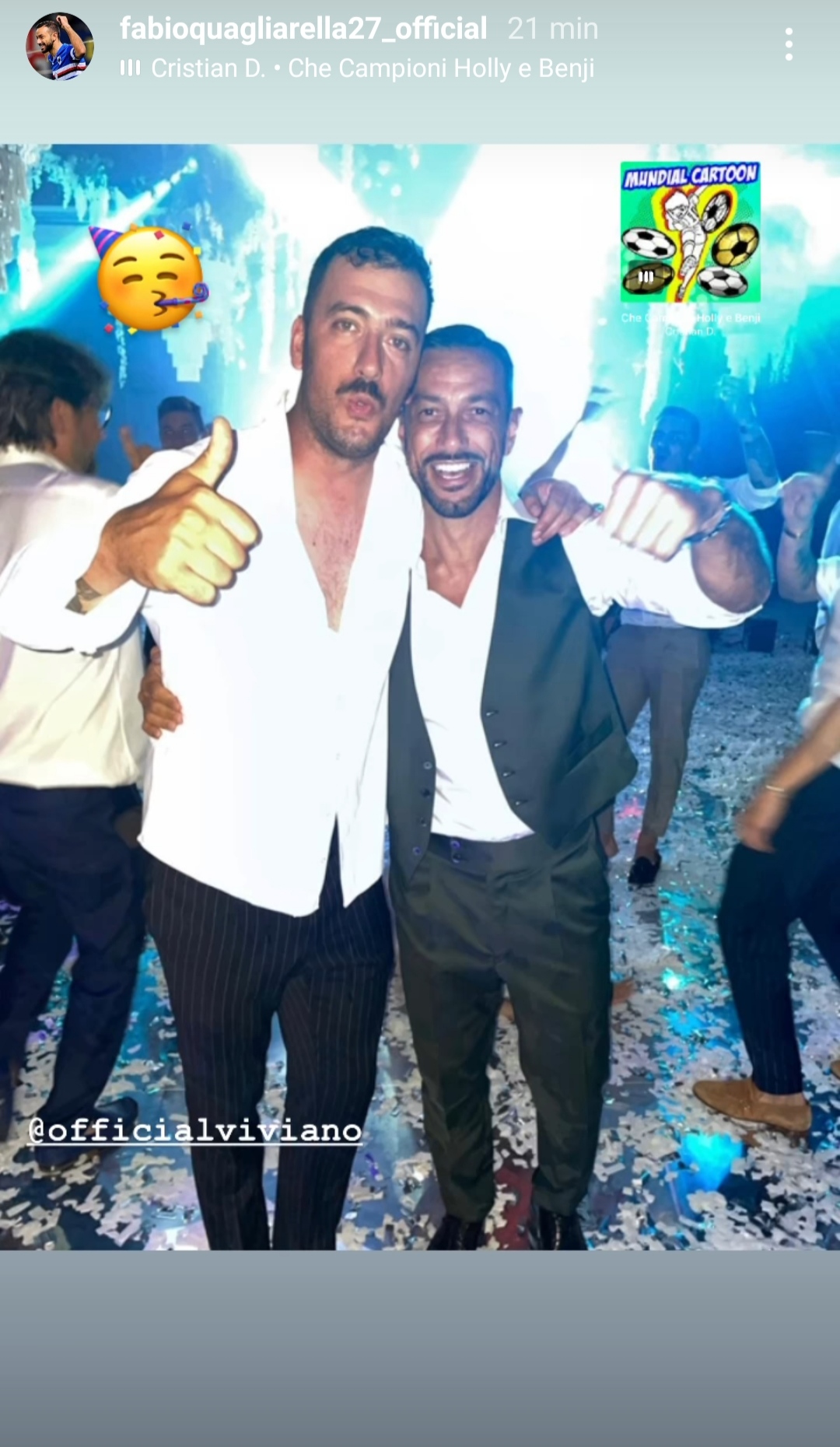 Non solo Keita Balde, Manolo Gabbiadini e Fabio Quagliarella: al matrimonio di Vasco Regini, infatti, era presente un’altra vecchia conoscenza blucerchiata: Emiliano Viviano.