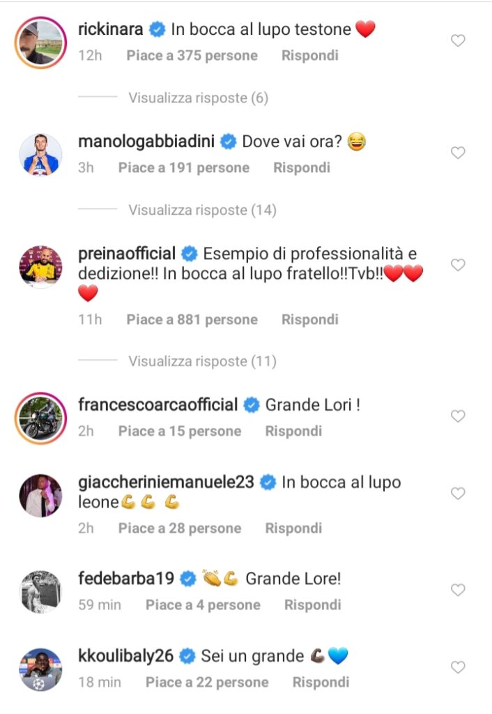 Da Reina a Barba, passando per Giaccherini, tra i commenti spicca quello di Riccardo Saponara, grande amico con cui ha giocato insieme sia all’Empoli che alla Samp: «In bocca al lupo testone», il messaggio affettuoso del centrocampista ora al Lecce. Manolo Gabbiadini, che ha riabbracciato oggi al “Mugnaini”, ha scherzato: «Dove vai ora?». Non passa inosservato Kalidou Koulibaly, che ha elogiato Tonelli: «Sei un grande».